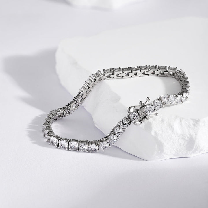 New Trending S925 Sterling Silver/Rhodium One Piece Jewelry Bracelet Chain For Women Luxury Zircon-4MM