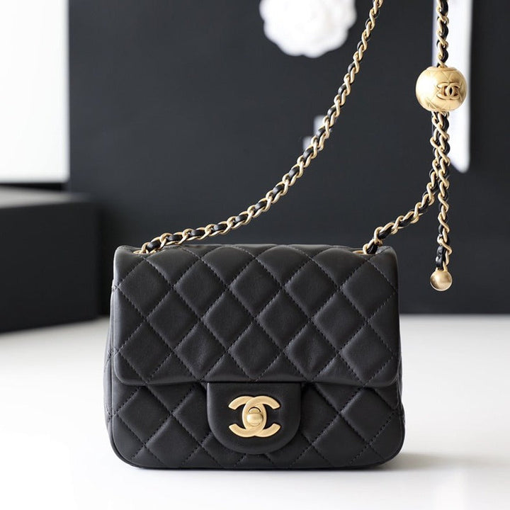 - Color: Black leather, gold hardware
