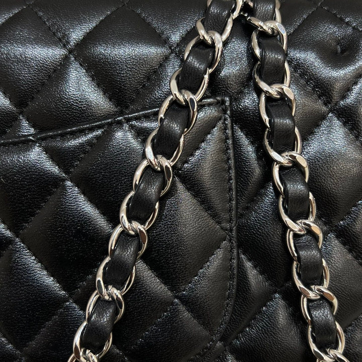 - Color: Black leather, silver hardware